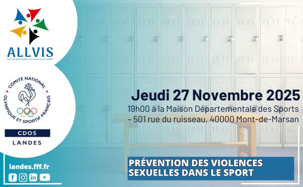 Le Comité Départemental Olympique et Sportif des Landes (CDOS 40) poursuit son engagement dans le cadre du dispositif ALLVIS, en proposant un nouveau rendez-vous fort autour d’une thématique essentielle : la prévention des violences sexistes et sexuelles dans le sport.